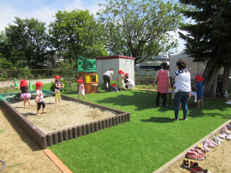今日は、今年度2回目のフリータイム参観日でした。朝から天気が良く外遊びから始まりましたよ