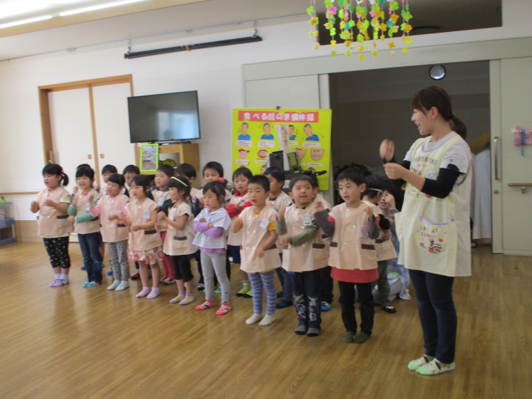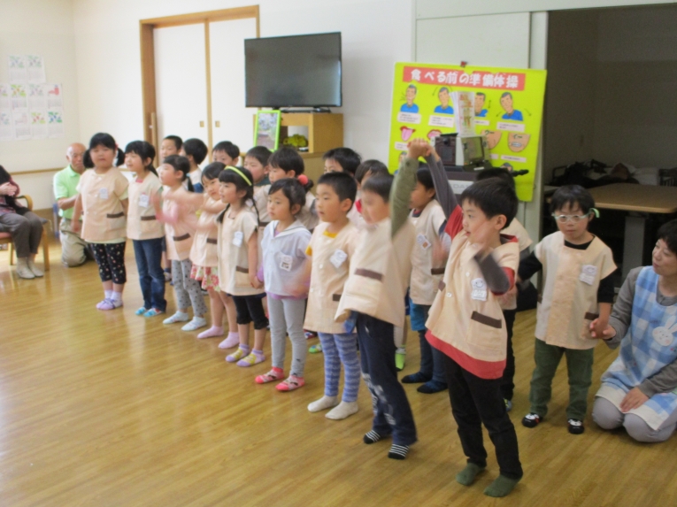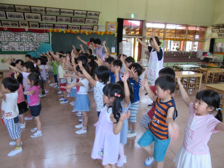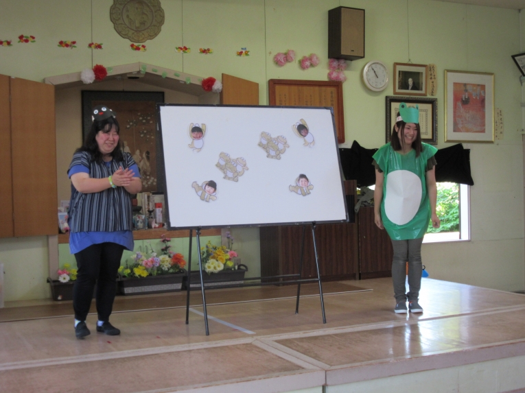 先生からの出し物「オタマジャクシの体操&カエルの体操」