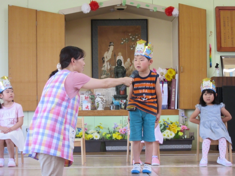 名前を呼ばれて、元気にお返事をしてステージに上がります