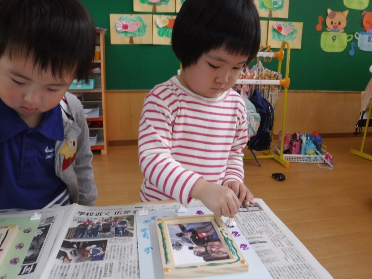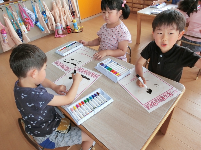 年長さんは、お父さんの顔を描き、今ヨークベニマル駅前店に飾ってあります