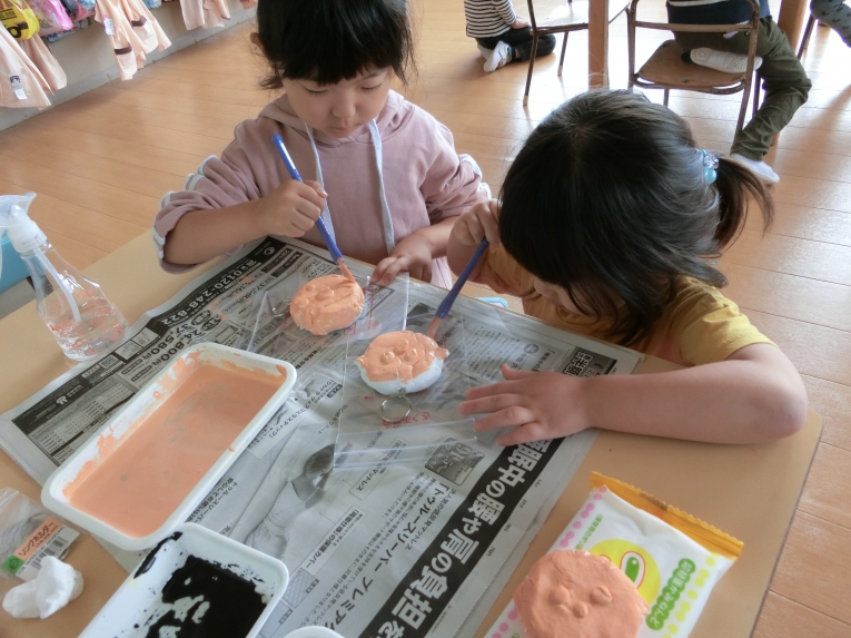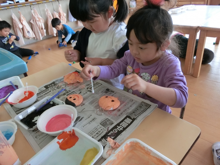 ゆきぐみさん「紙粘土で作った 顔のペンダントと置き物」