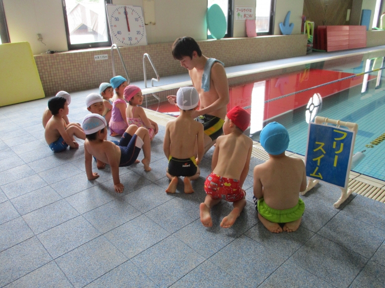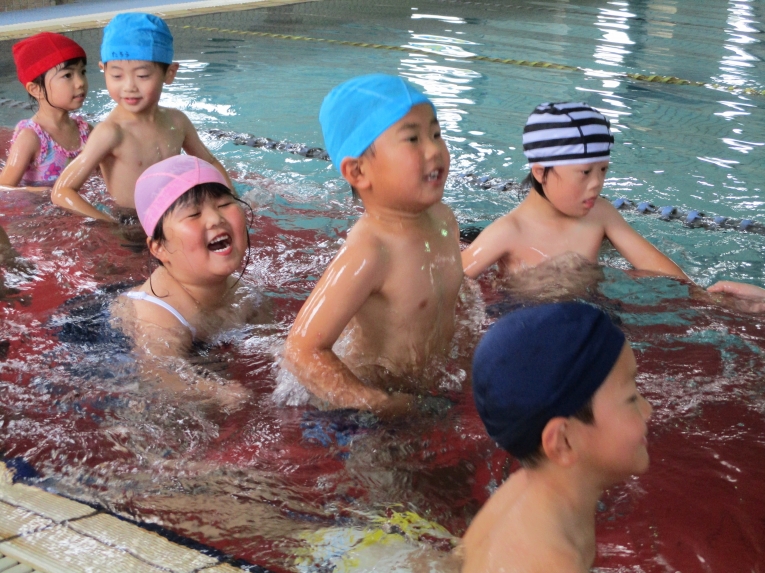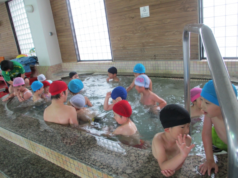 年長さんになってとても楽しみにしていたスイミングが昨日ありました「いつ着替えるの?」「早く行こうよ!」と朝からソワソワで楽しみな様子の子どもたち(^^♪ なかには「水に顔つけるのこわいな…」という子もいましたが、始まってしまったら楽しさ一色になっていたようです