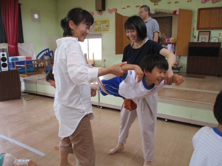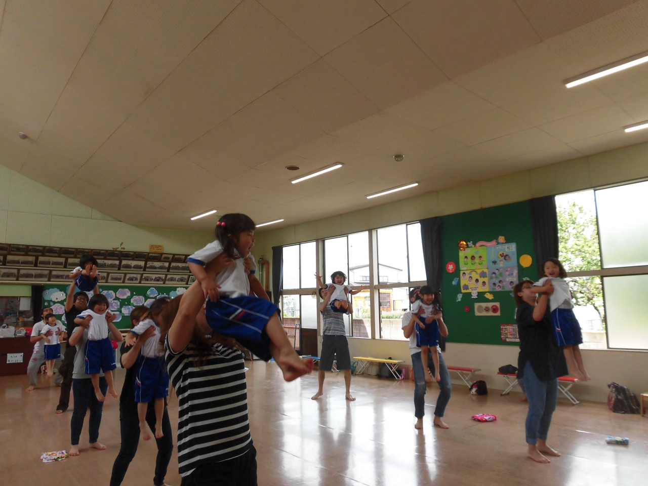 今日は、お家の人と一緒に体を動かす親子体操がありました