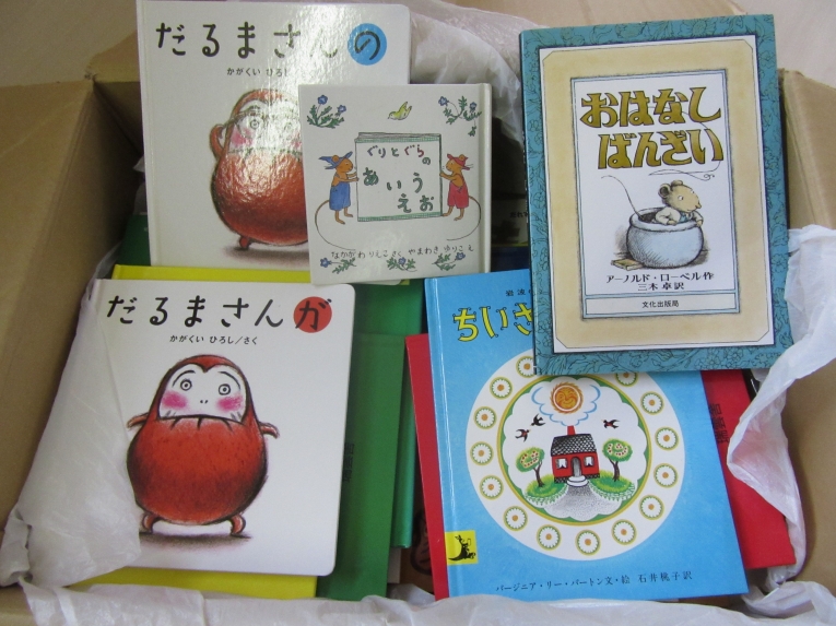 幼稚園に着いた大きな大きな段ボール箱。なんだろ?なんだろ?と開けてみたら、なんと絵本がどっさり・・・!!ほとんど新品のぴかぴか絵本が50冊もありました!!