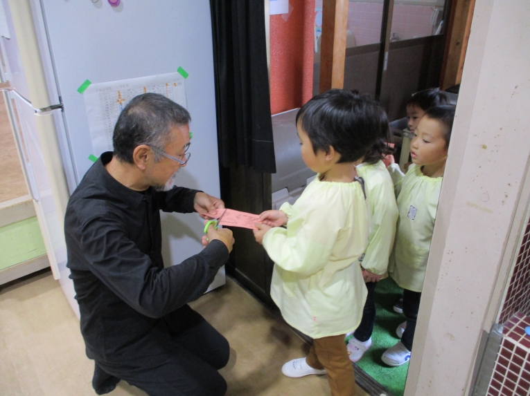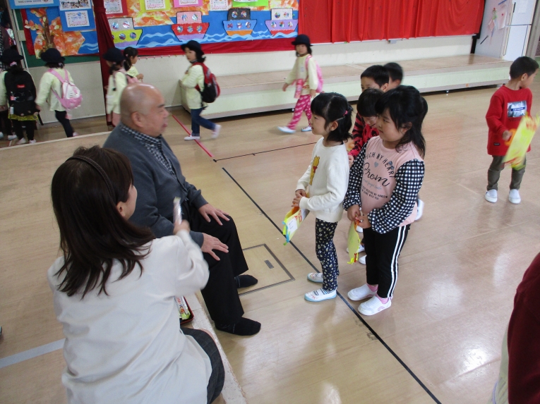 年長さんは、理事長先生から千歳飴を頂きました