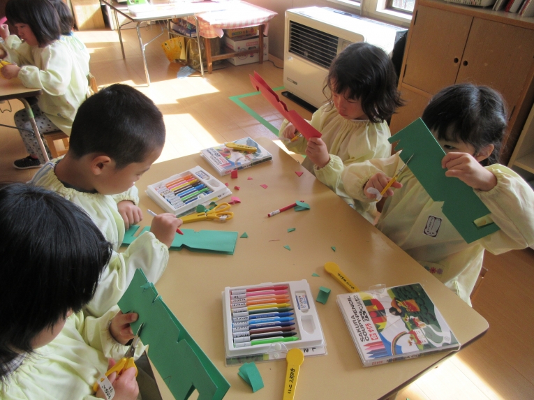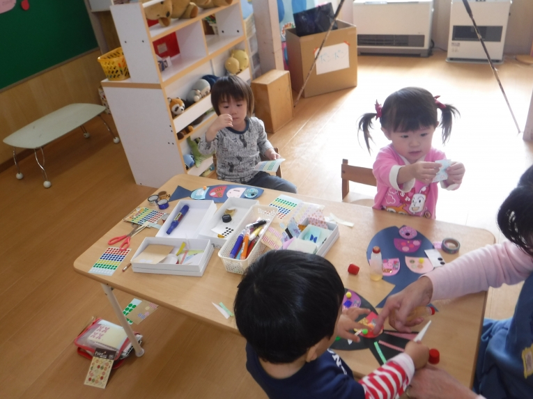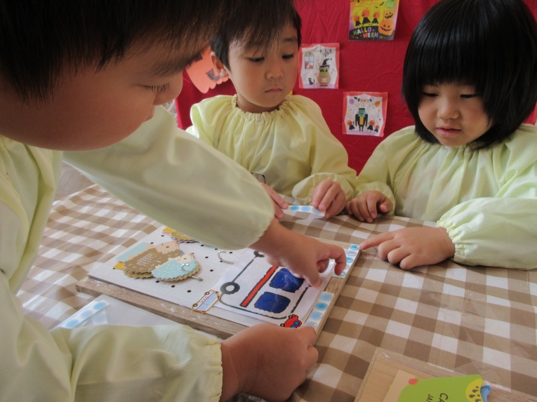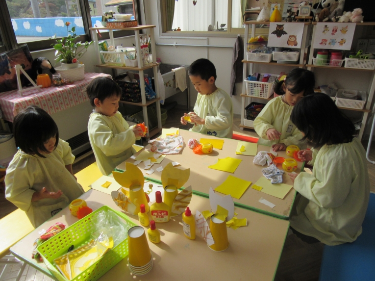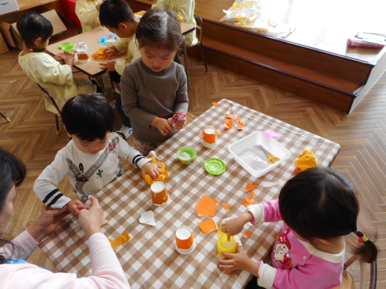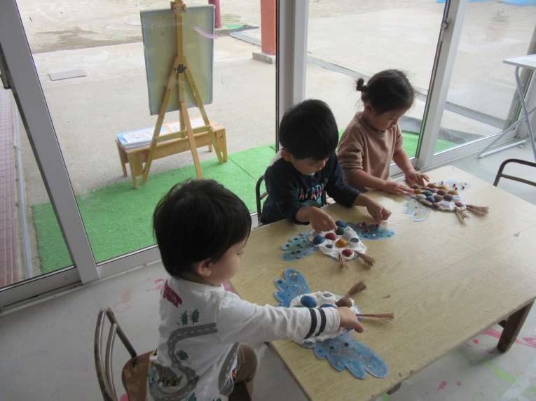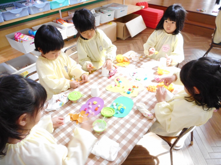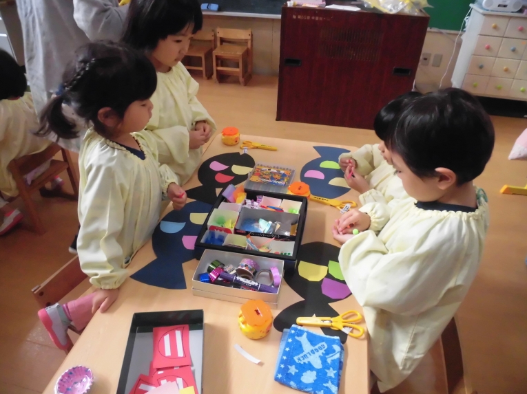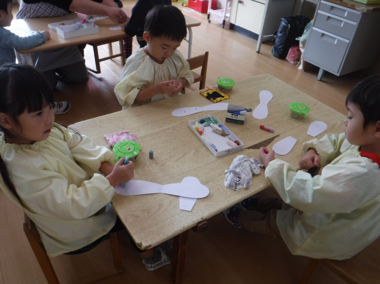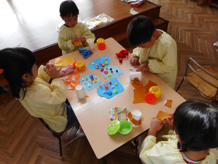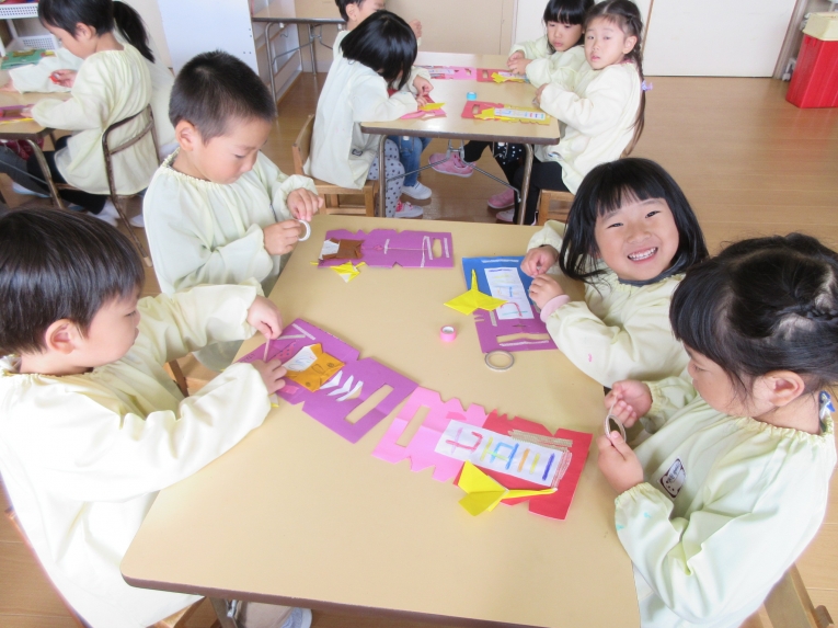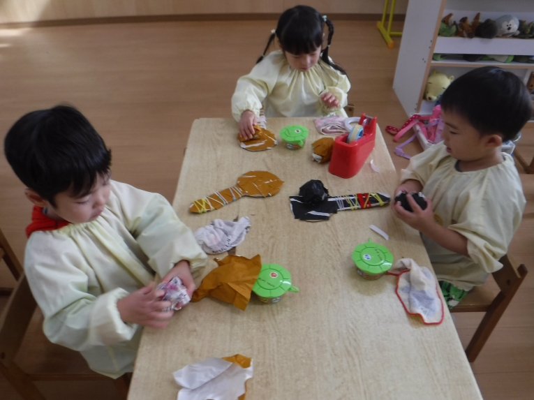 年中、年少、ひよこぐみさんは、6つの中から、自分の作りたいものを選んで、個人作品を作りました