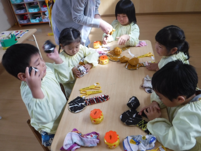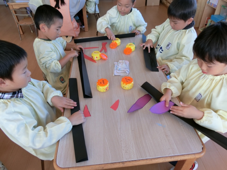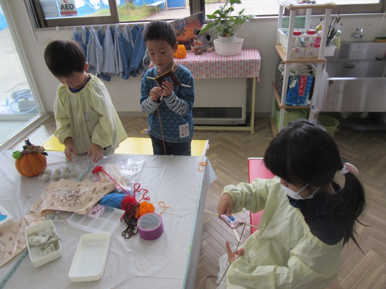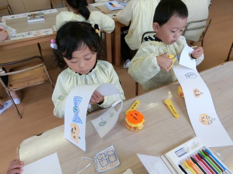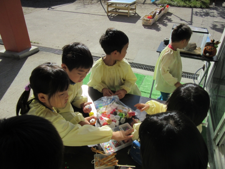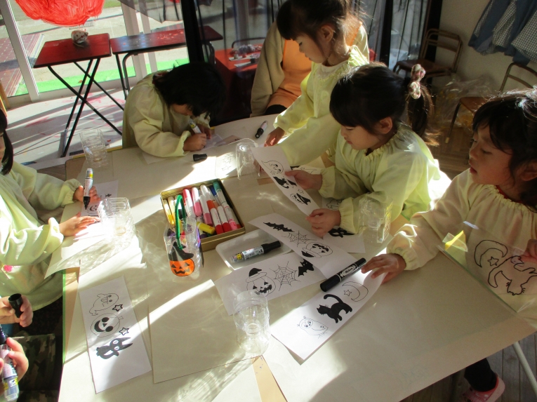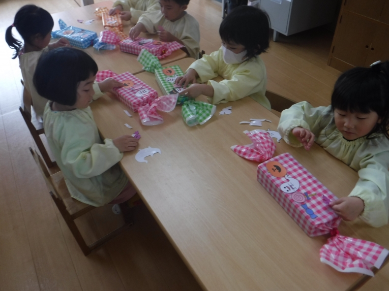 各クラス、ハロウィンパーティーに向けて、お菓子バッグや、衣装、帽子など準備にも取り掛かりました