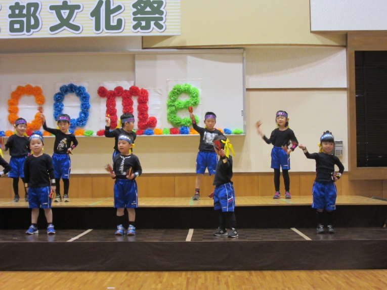 かわいらしいダンスと、鳴子をもって、かっこいい踊りを披露し、たくさんの拍手をもらいました