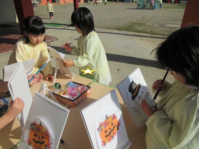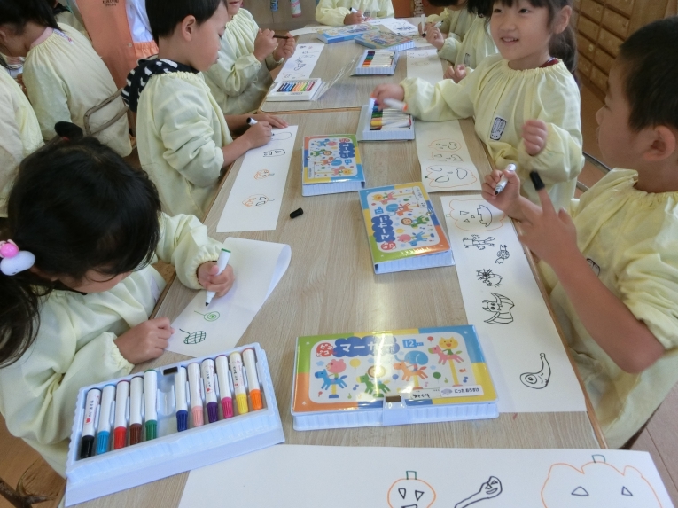 なかよしキッズ、幼稚園でのハロウィンが終わった翌日・・ 最後のなごりを惜しむように楽しんだのは、飾り付けで使ったハロウィンイラストを使った「絵描きさんごっこ」(^o^)丿 楽しかったね~ 今度は何が始まるかな?