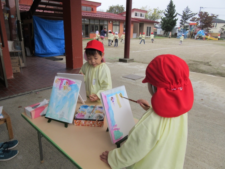 ハロウィンは魔女たちのお祭り?妖精さんも来るのかな?不思議な不思議な想像の世界に夢を拡げて、妖精さんの住む世界を描いてみました。ミニイーゼルにスケッチブックを立てかけて、妖精のイラストをぺたり。キラキラな特別な絵の具で優しく描いてみよう・・あら?なんて素敵な画家さんたち