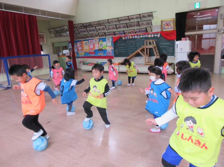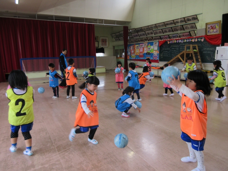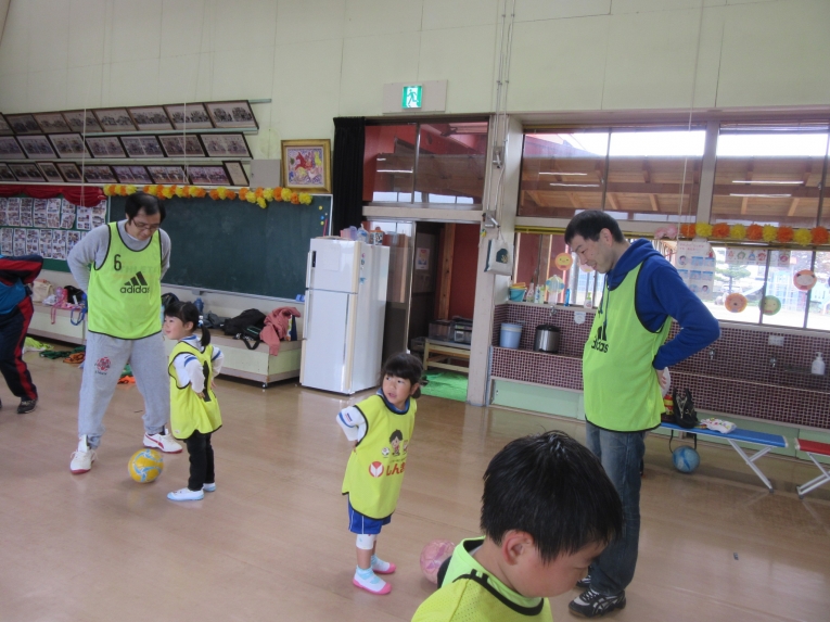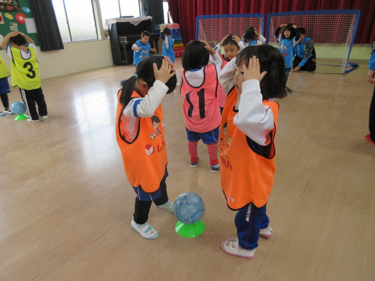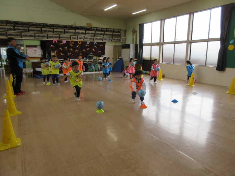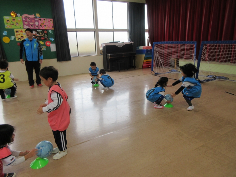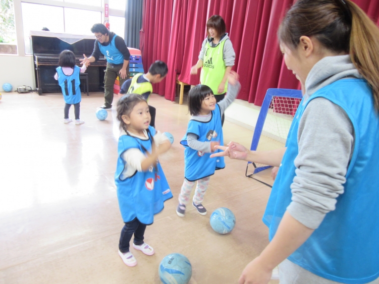 先月の中頃、親子サッカー教室がありました年長さんのようにサッカーやりたいと憧れていたうめ組さん。前回からサッカー教室が始まり、次はいつかな?と楽しみにしていました!なので、お家の方といっしょで、出来るようになったこと、「こうやってサッカーするんだよ」「見てみて」と元気いっぱいでした