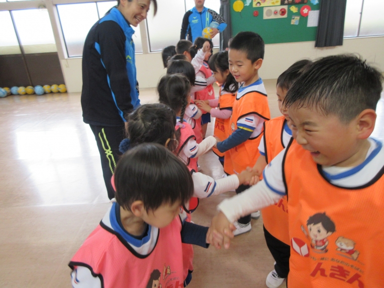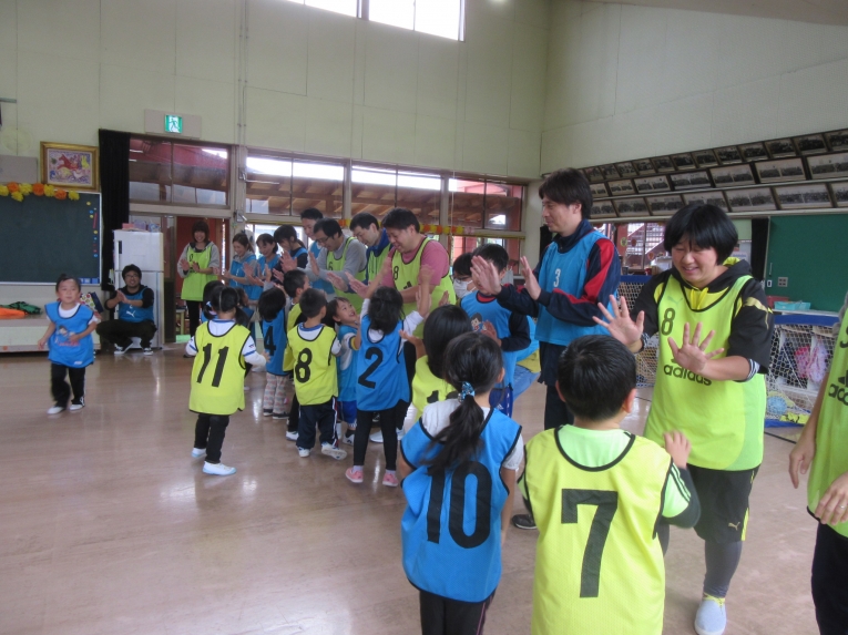 こぼれ球をシュートし、かっこいい姿を見せてくれたK君!拍手があがりました最後はみんなでタッチ!楽しかったですね!