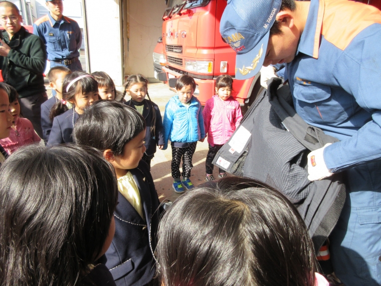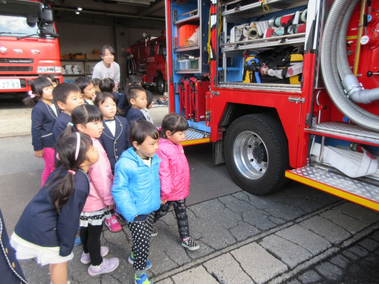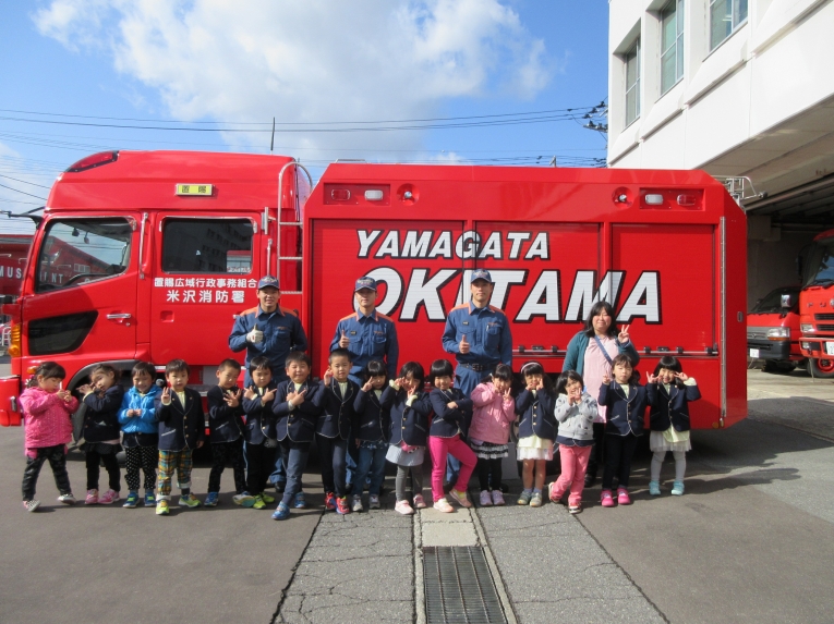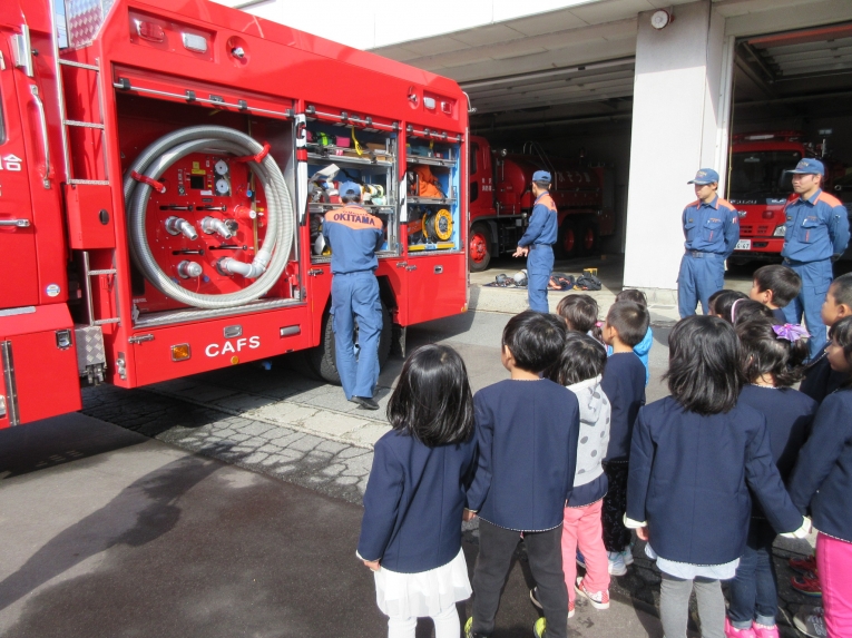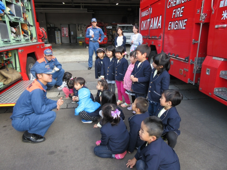 消防署で働く皆さん、お忙しい中ありがとうございました。園に戻ってからも、「かっこよかった~」「また行きたいな~」と笑顔いっぱいの子どもたちでした