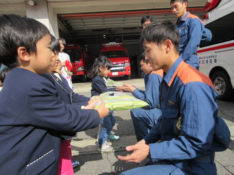 6日、うめ組は消防署へ行ってきました勤労感謝の気持ちをこめて、プレゼントを作り、この日を楽しみにしていました