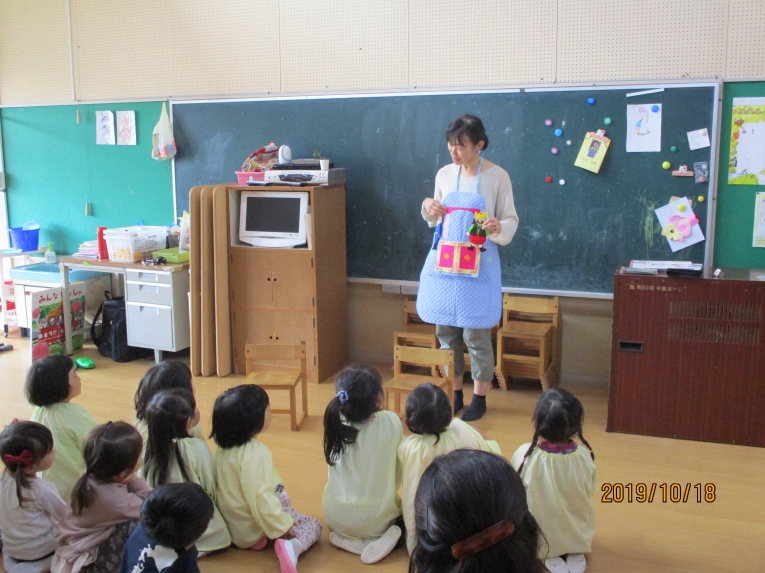 3冊の絵本が終わったら・・・いよいよ あの「エプロンシアター」の登場~
