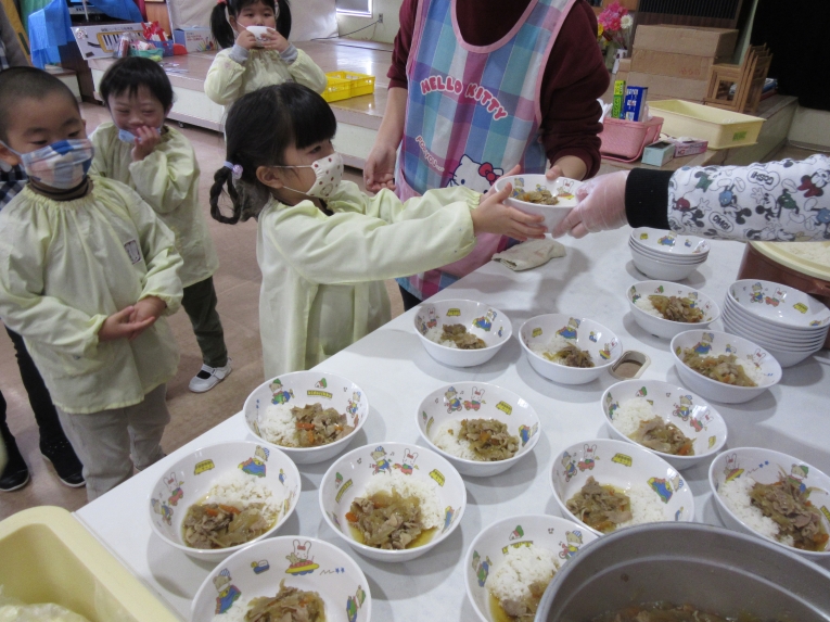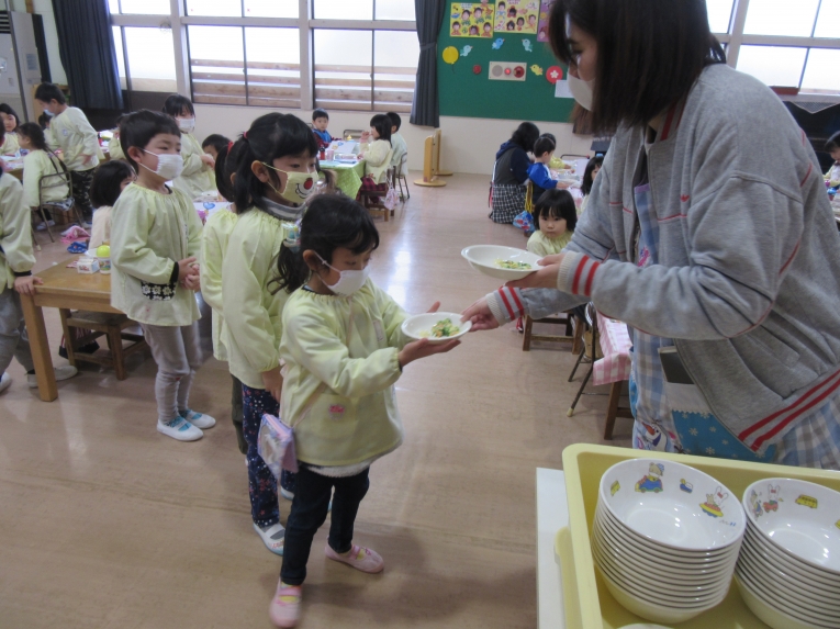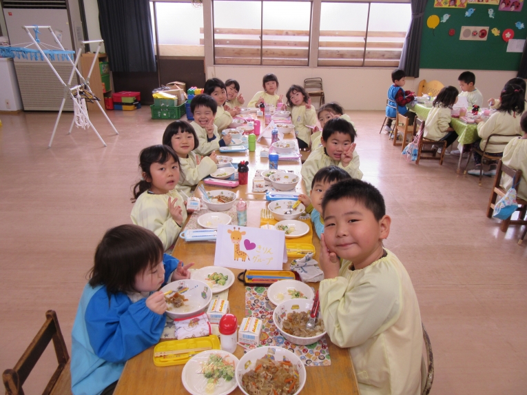 20日はわくわくランチがありました3学期を通しての異年齢グループが決まり、ペアのお友達と一緒に給食を食べました
