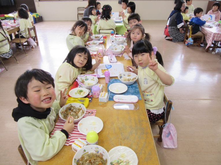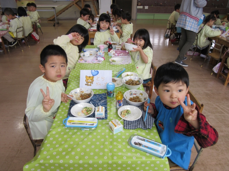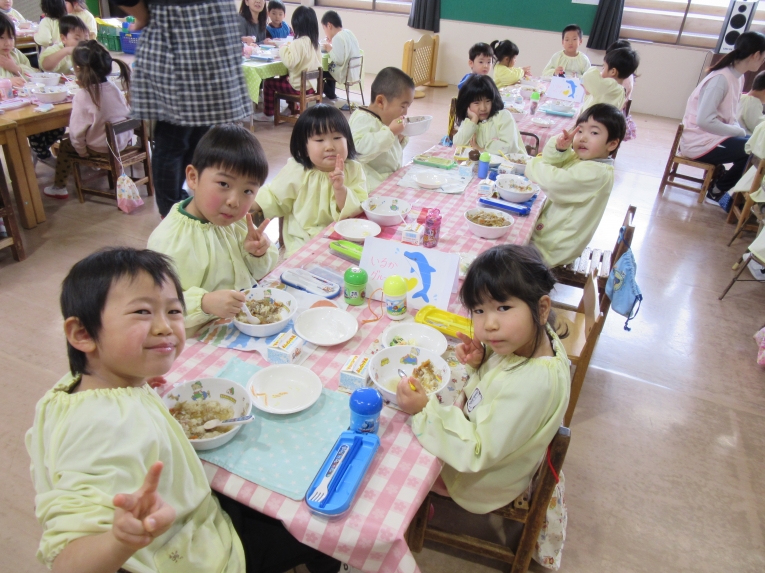 給食は、年長さんがペアの子に運んでくれました