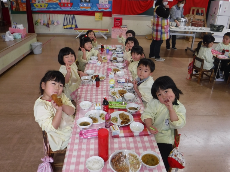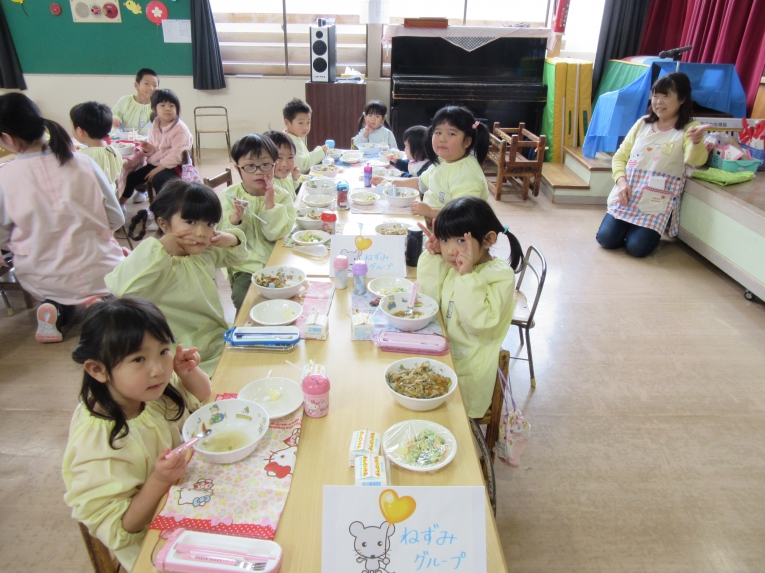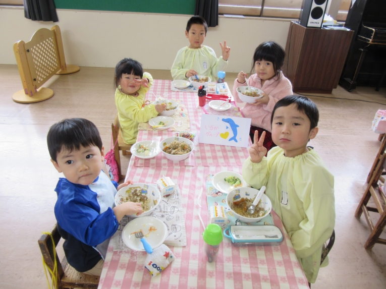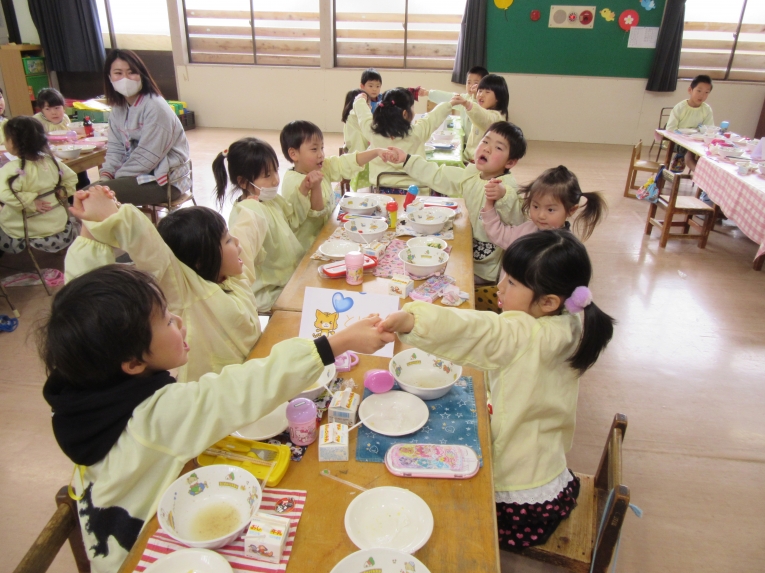 食べ終わった後には、みんなで手をつないで「かんしょく~!!」と元気いっぱいなグループも