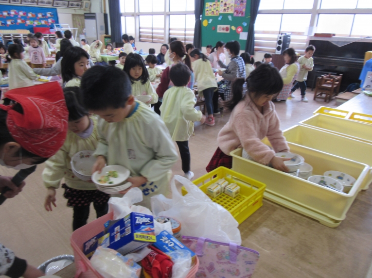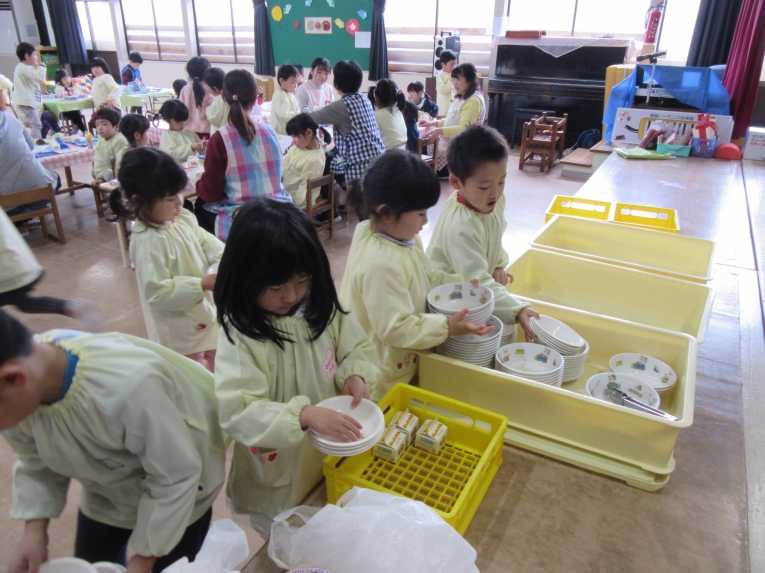 最後のお片付けでは、もうすぐ年長さんになる年中さんの出番食器を重ねて、運んでくれました