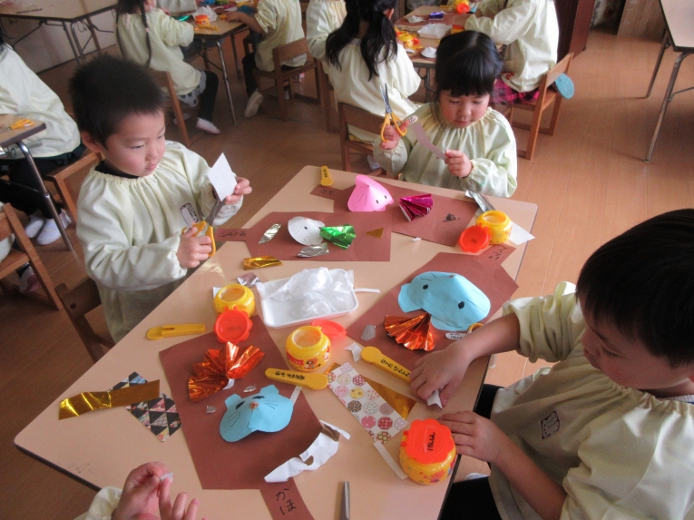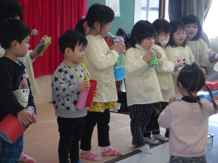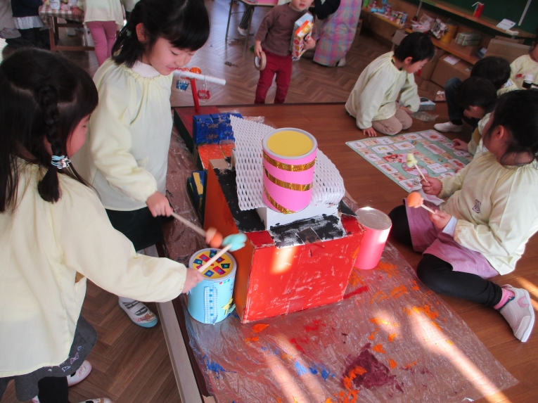 ちゃれんじルーム お正月から手作り楽器