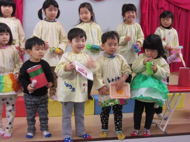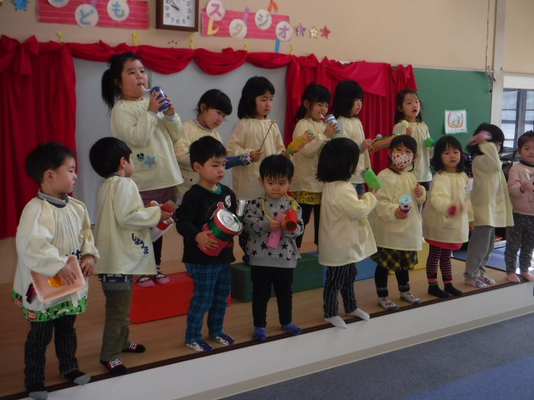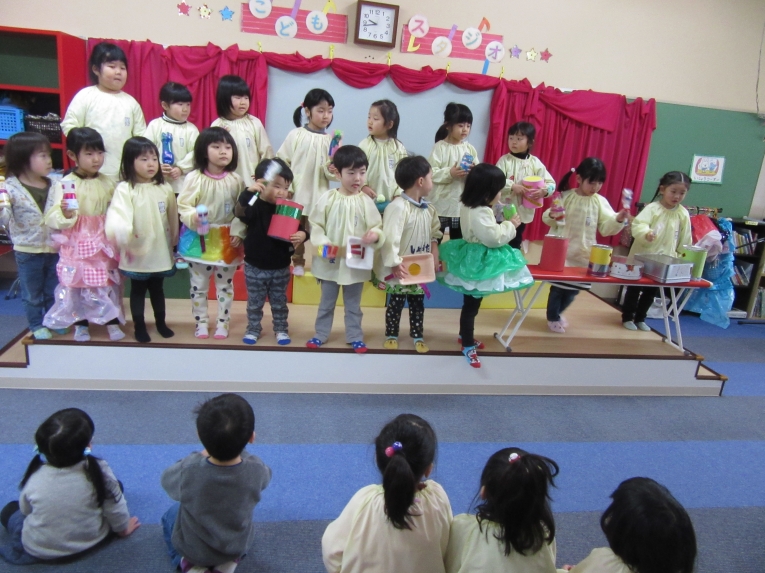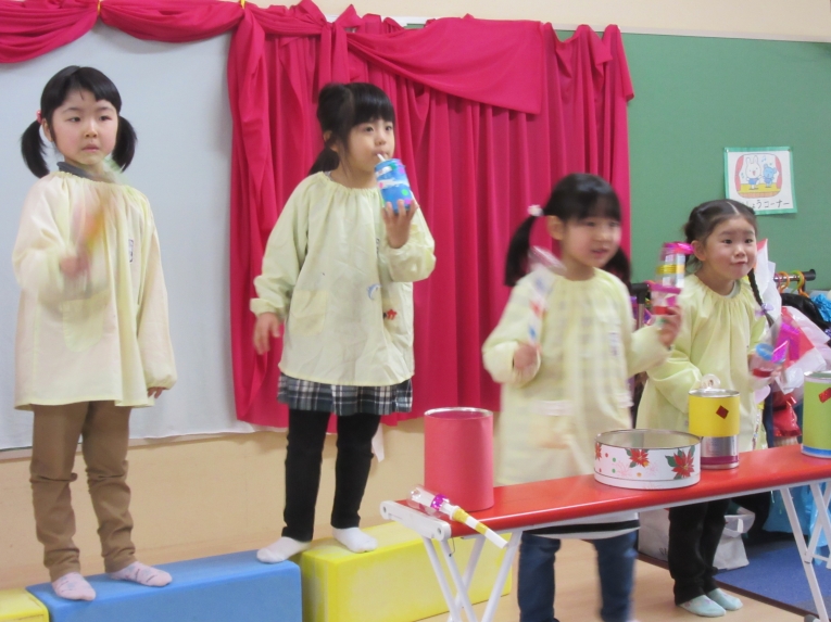 他にも、たいこや、空き缶笛、ドラムを作って1月23日にコンサートを行いました
