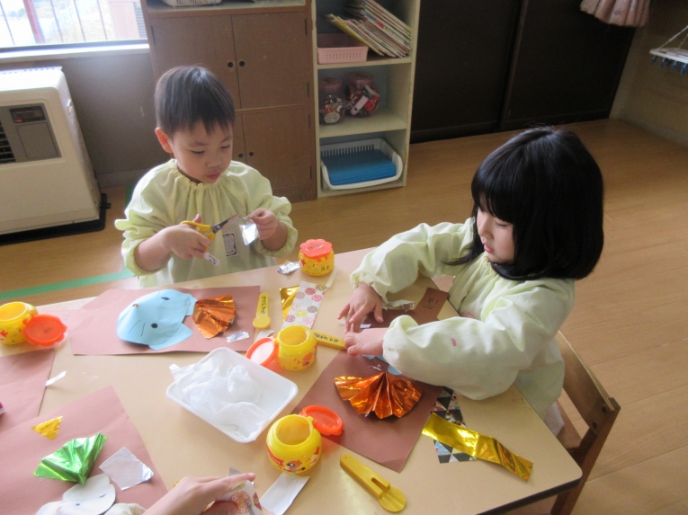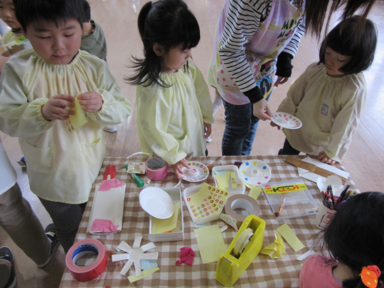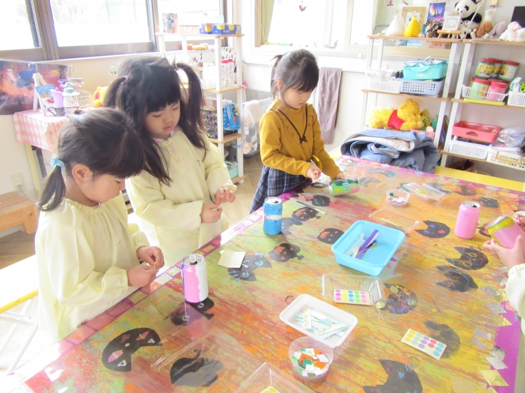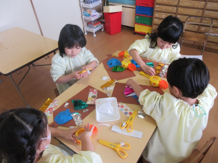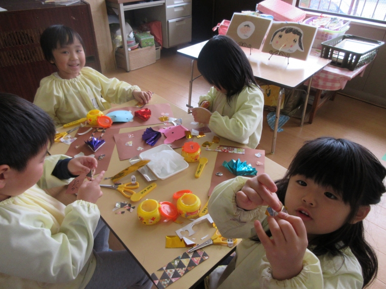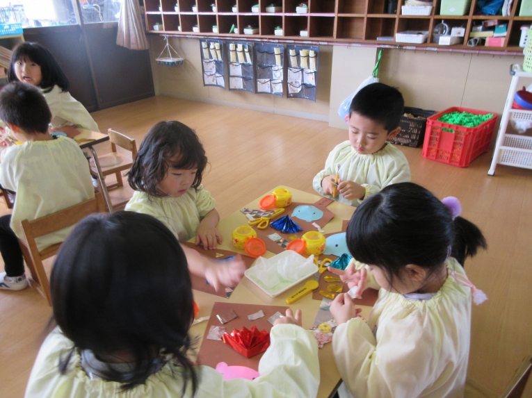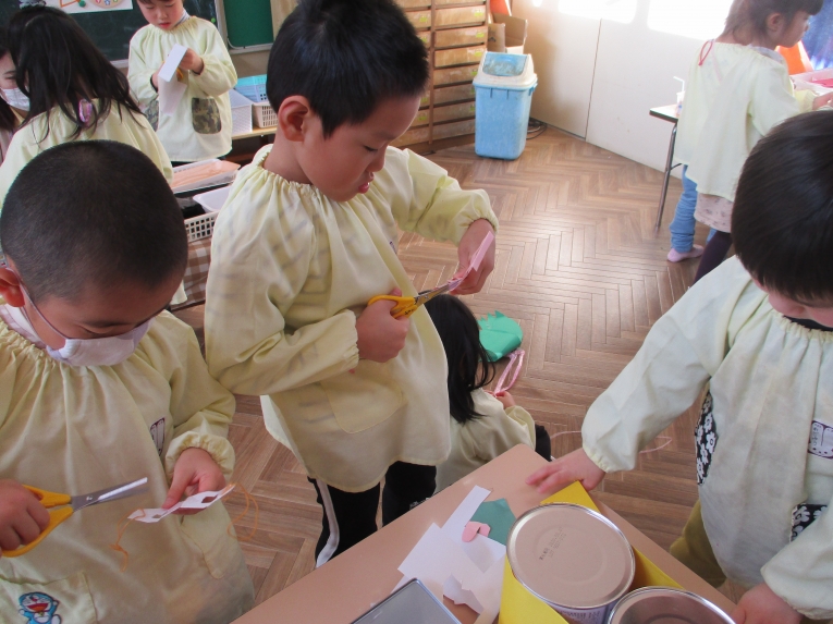 自分で考えながら 形を切って貼っていくのが楽しい様子