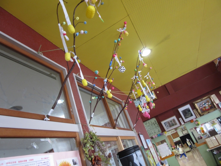 小正月の「団子の木」から