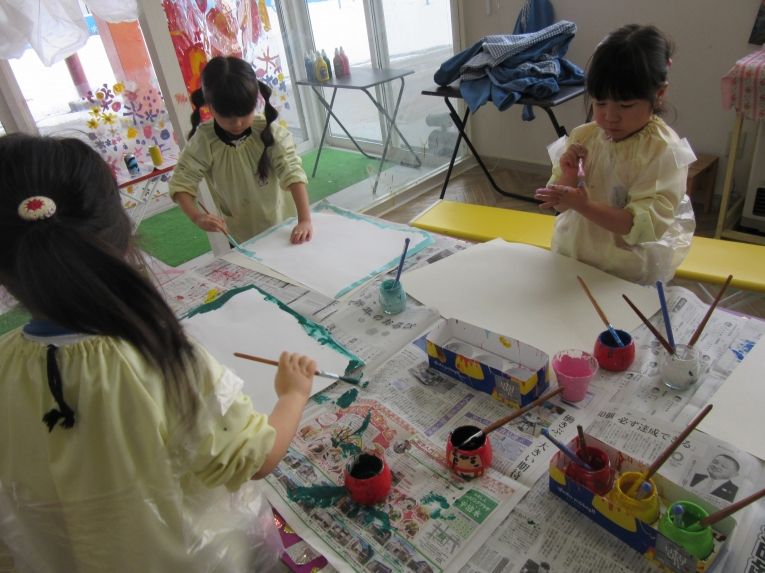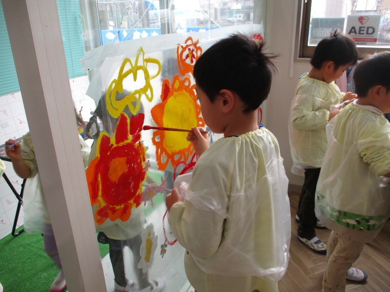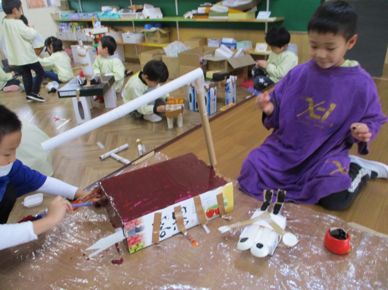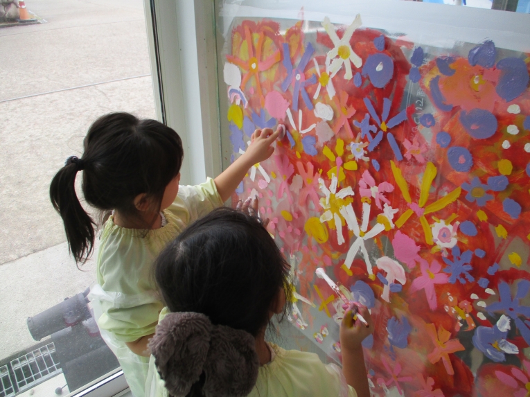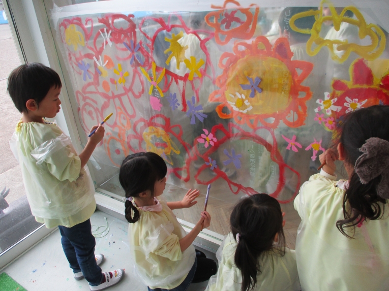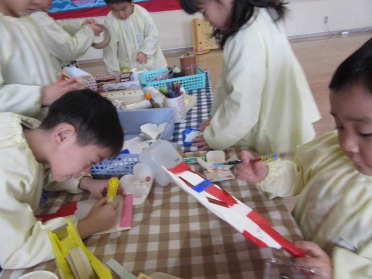 また、年長になっていろんなアイディアを生み出したり、自分たちの発想で様々なものを作れるようになってきた子どもたち(*^^*)そんな子どもたちののびのびとした考えで、アトリエでは、お花をイメージしながらいろんな色、大きさの絵を自由に描いたり、フリールームでは、様々な素材を使って恐竜やロボット、バイクなどを作ったり、楽しみましたよ素敵な作品が完成しました(*^^*)