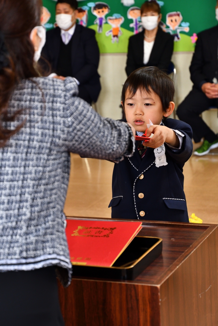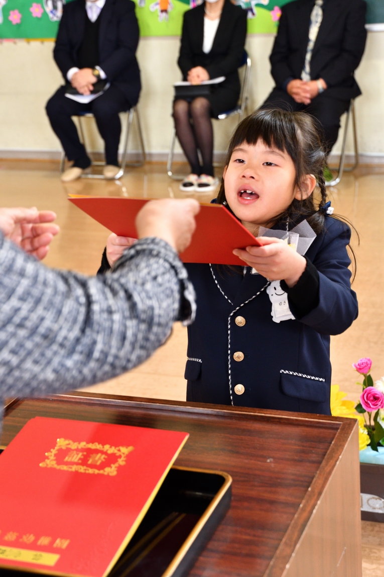 にこにこ笑顔で入場の後は、元気に幼稚園の歌♪ そして、園長先生から「卒園証書」をいただきます。