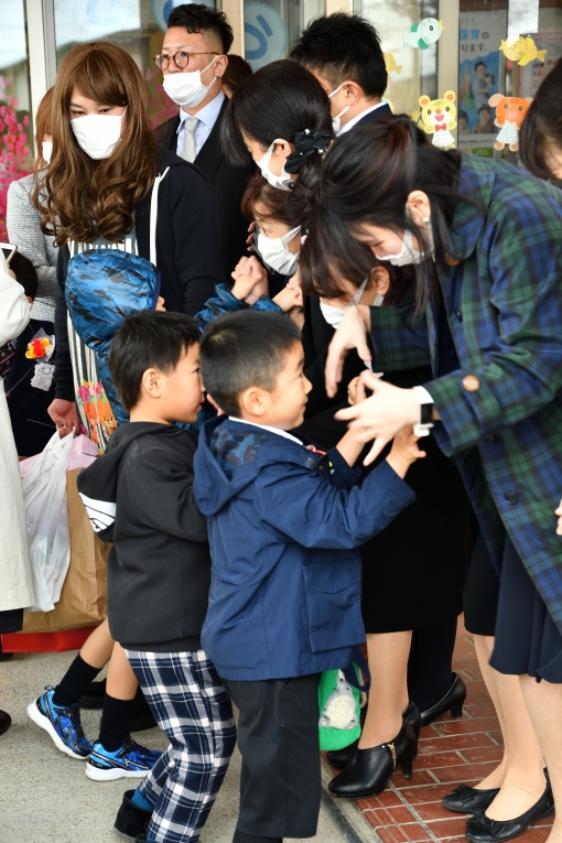 お見送りは玄関前で・・マスクをつけたままの卒園式だったけど、みんなで泣いちゃって最後は笑顔で、心に残る最高の卒園式でした。ゆきぐみさんご卒園おめでとう!保護者の皆様 本当に本当にありがとうございました。