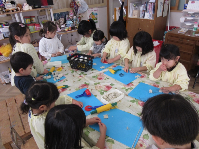 うめ組さんは、今年度ずっと「海」がテーマだったので、海にちなんだお菓子を食べて修了をお祝いしました