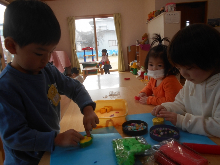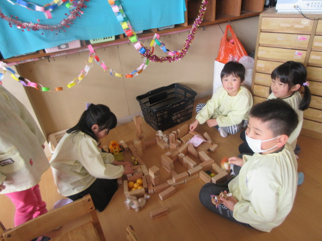 3月になって、「そつえんまであと…」とカウントダウンの表示を出しましたすると子どもたちは「え~!もうこれしかないの?」「さみしいね~」とお友達と話をしていました。さみしさを感じながらも、お友達と夢中になって一緒に遊ぶこともグッと深まり、遊びが盛り上がっているようです
