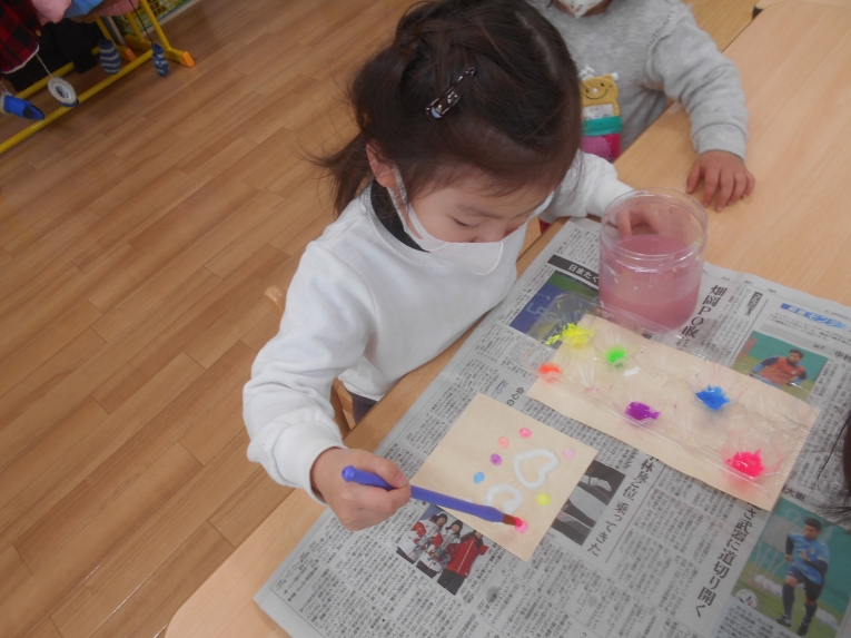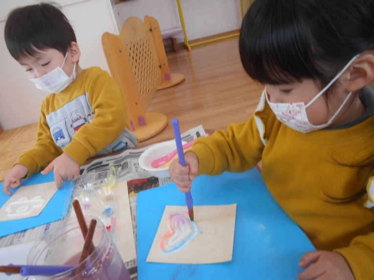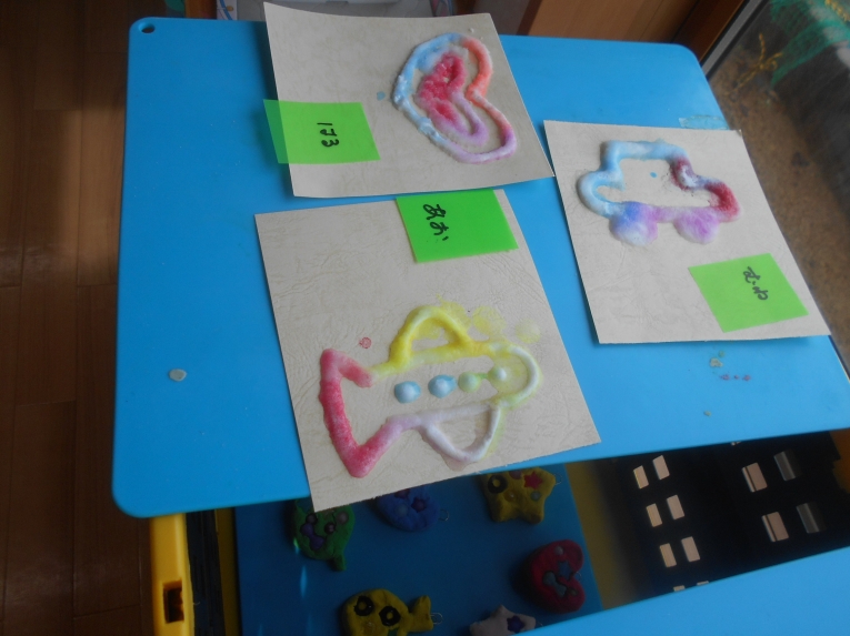 ゆき組さんに心を込めて・・・紙粘土でのキーホルダーとソルトペィンティングでのメッセージカード作りに取り組みました。