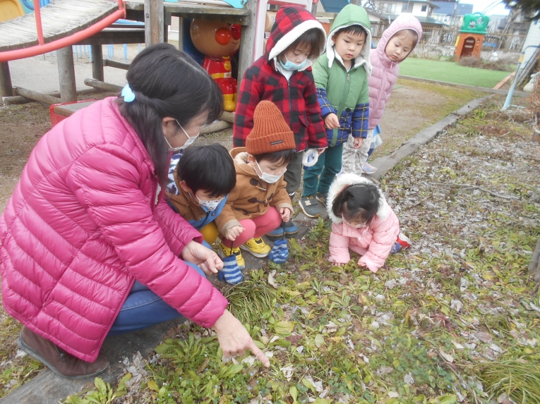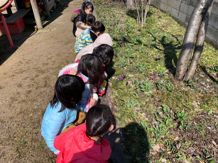 滑り台の脇に花壇に咲いているお花を見つけて、みんな大喜びでした。