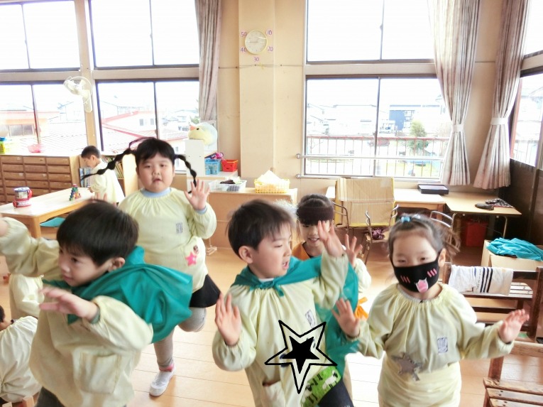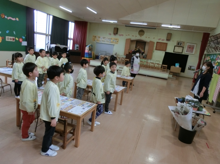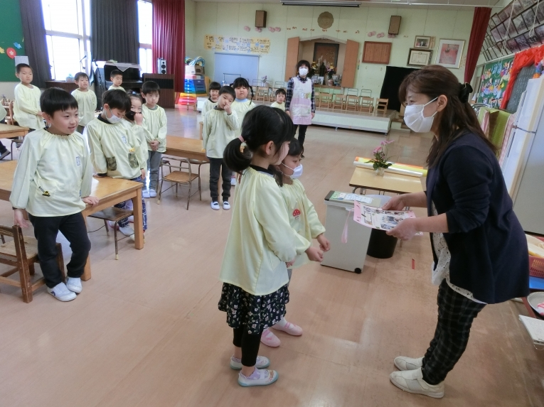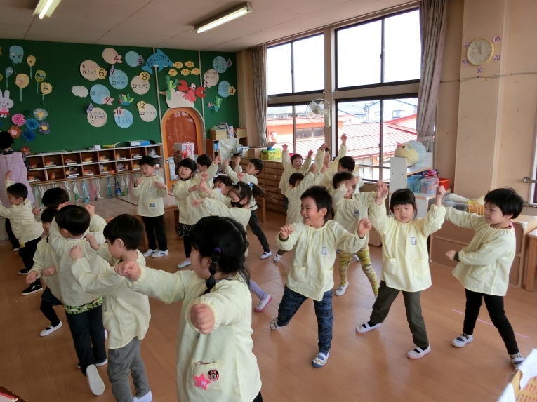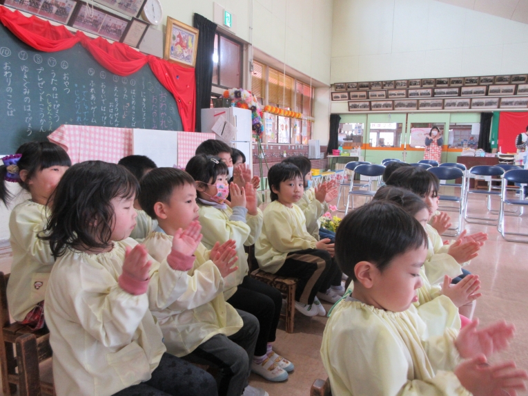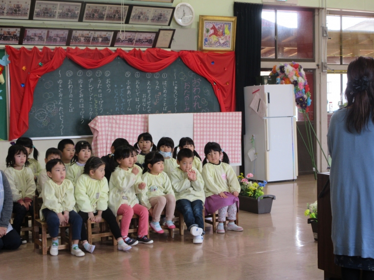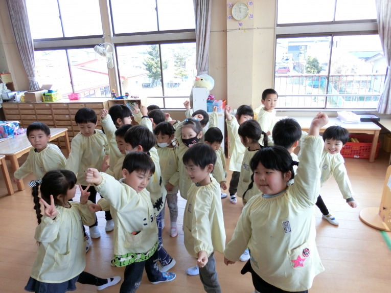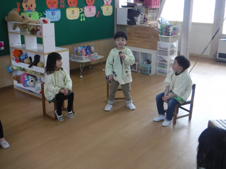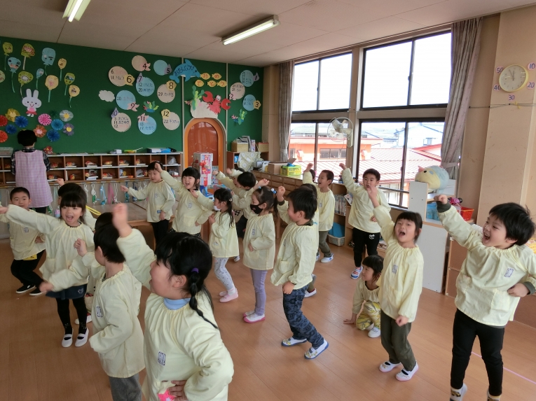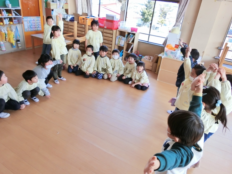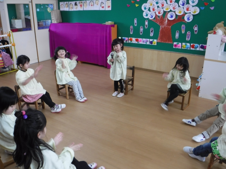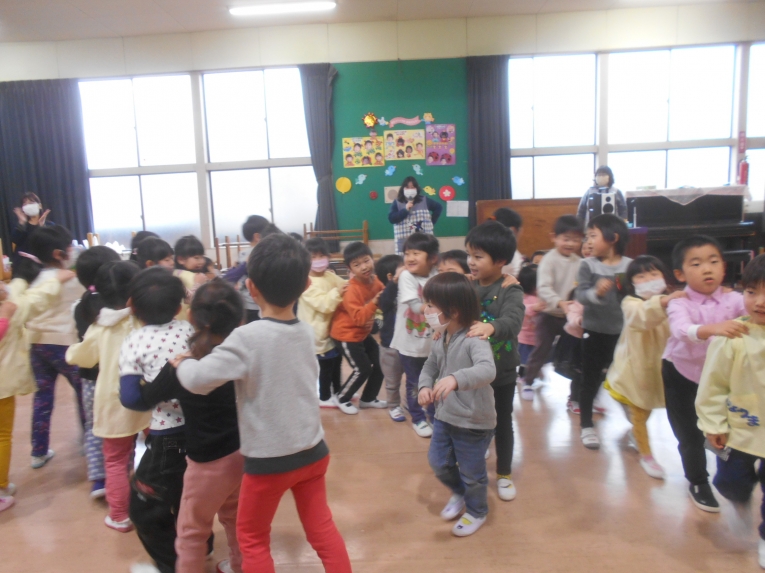 最後は、「ぱんぱかぱんぱんぱーん」を歌いました4月からは新しい学年、そして、年長さんは小学生