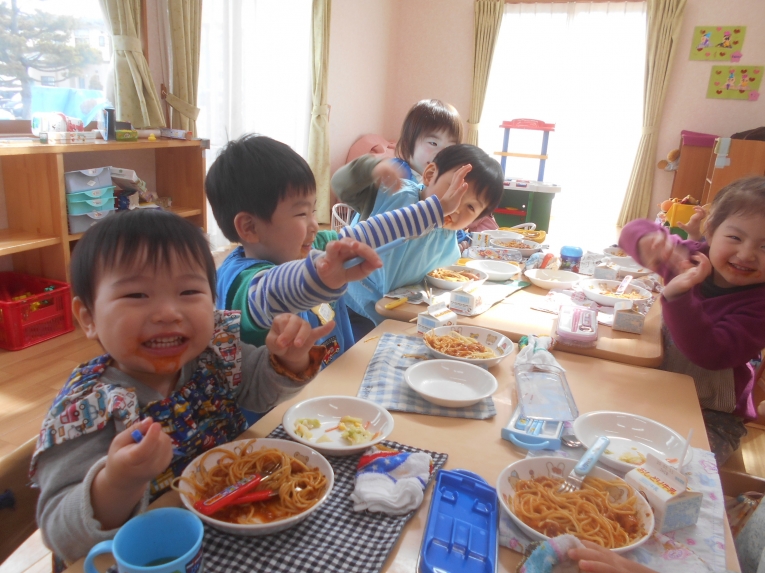 ゆきぐみのお部屋で食べるご飯も、なんだか特別だったね(*^-^*)♡