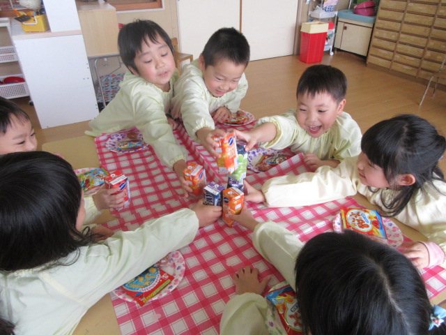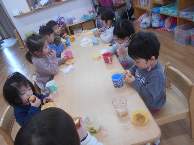 そして、おやつパーティージュースで乾杯し、おやつを食べました