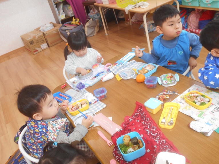 最後のお弁当はお部屋でみんなで楽しく食べました♪