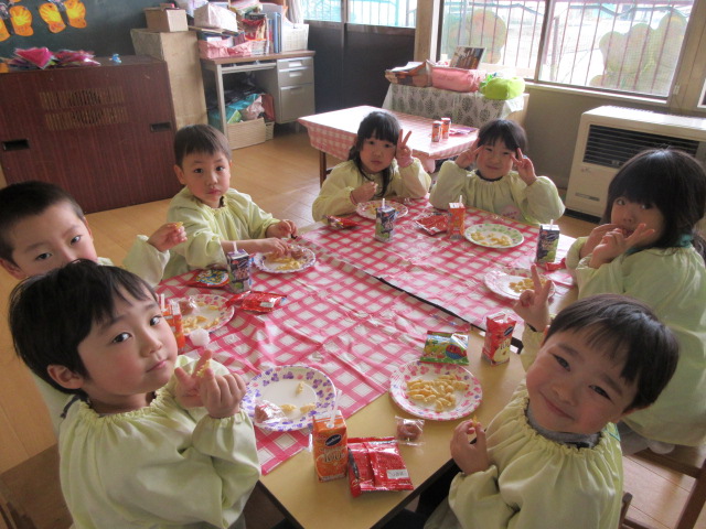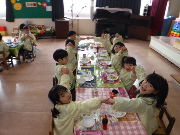 「みんな1年間楽しかったね~🎵」とお話ししたりしながら、おいしく食べました💓