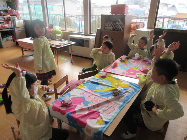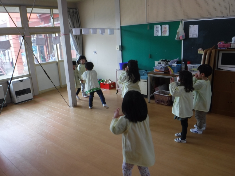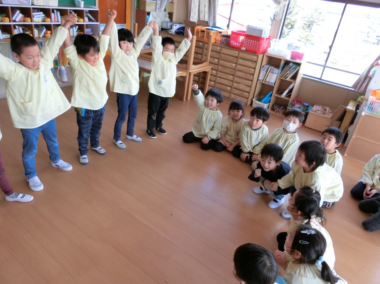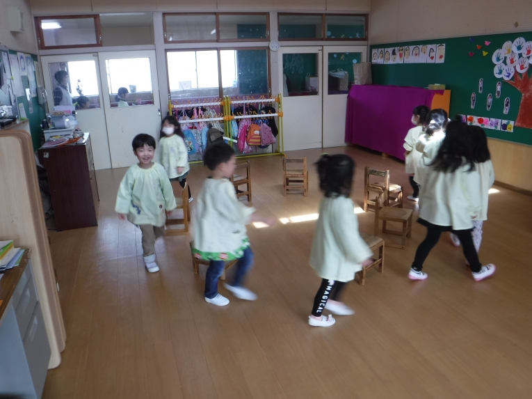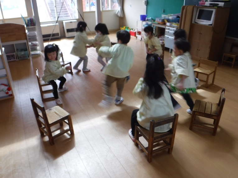 おやつの後は、みんながやりたいと言った、「じゃんけん列車」と「フルーツバスケット」でもりあがりました