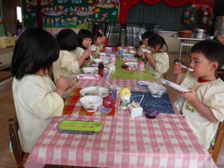 ゆき組さんが数回に分けて一緒に給食を食べに来てくれました。