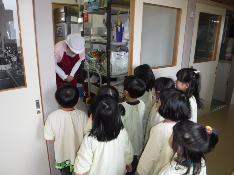 「最後の給食だからみんなでありがとうを言おう!」という話になり、みんなで調理員さんにみんなでお礼を言いに行きました!