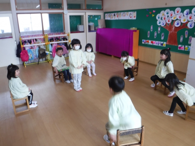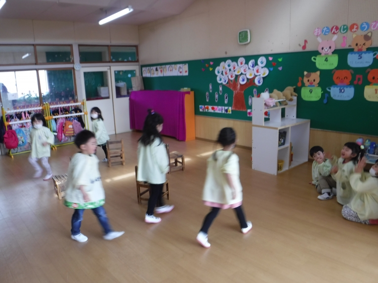 みんなでフルーツバスケット、椅子取りゲーム、おおかみさん、あわぶくたったをしました!