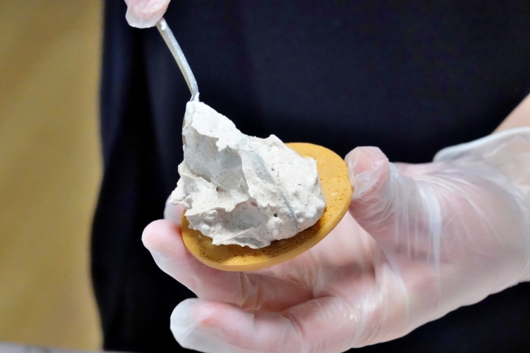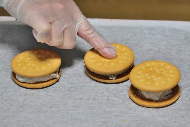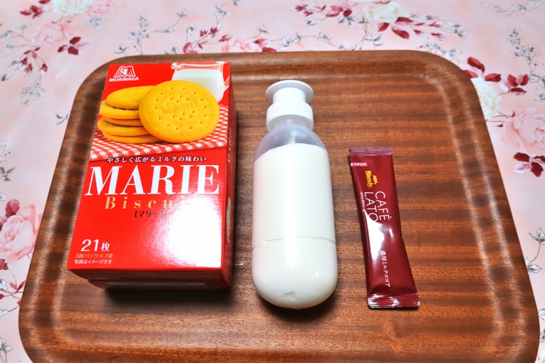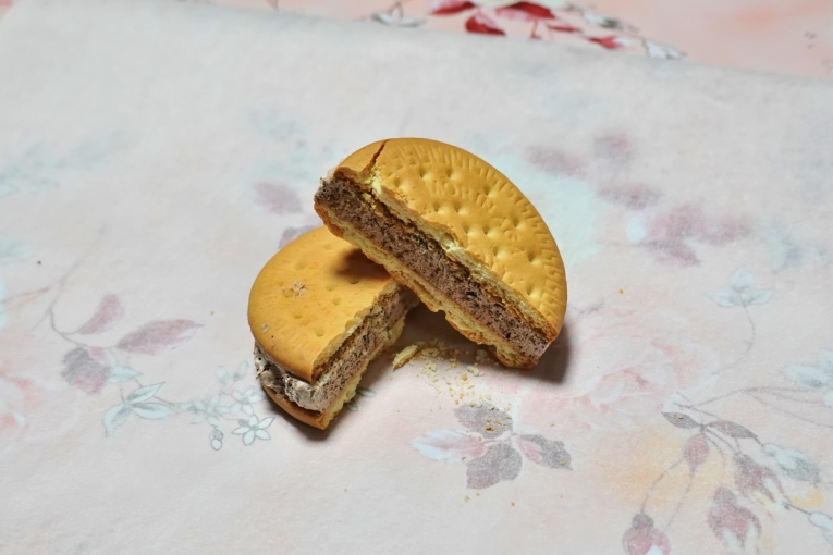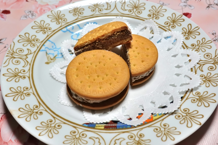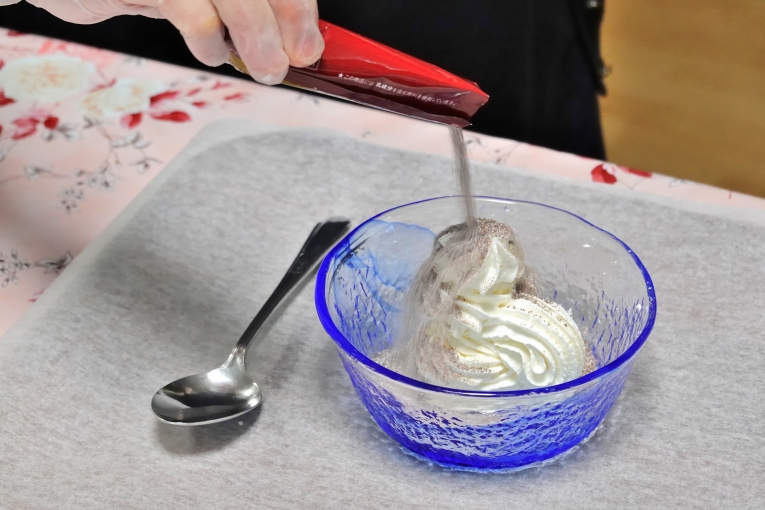 ビスケット4枚で生クリーム3分の1 ココア(本当は少量のお湯で溶かしてください)を入れます