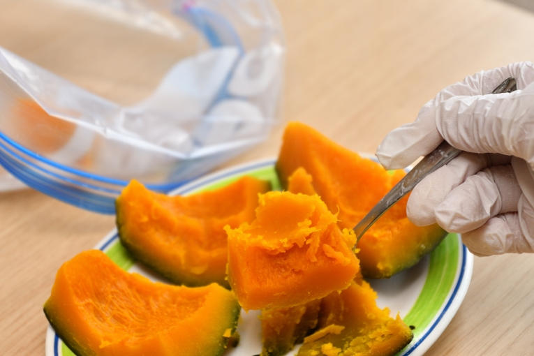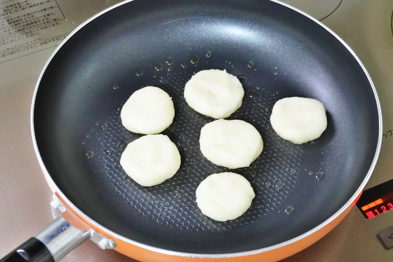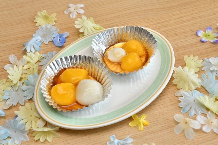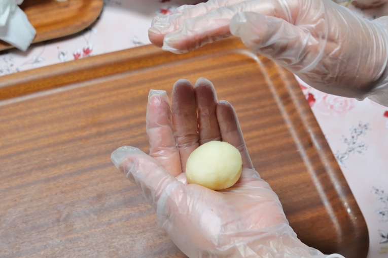 幼稚園では年中さんたちが、かぼちゃを収穫した秋に、「お月見団子」として作りました。黄色が色鮮やかな美しいお団子です。