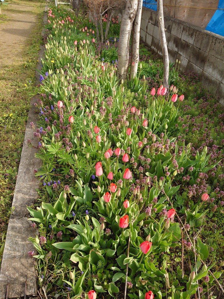 そうそう こんなお花も咲いていました。私の大好きな春真っ先に咲く青いお花。ムスカリといいます。