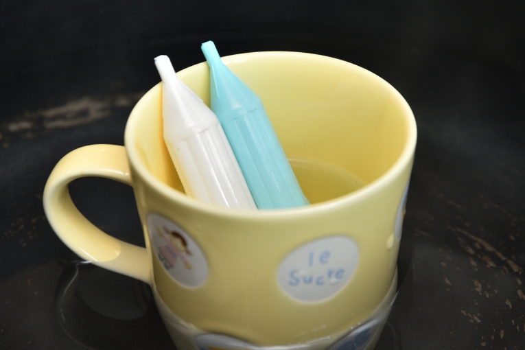 チョコペンは予め湯せんで溶かしておきます。↑本当は逆さ・・(間違えてペン先を切ってしまいました)