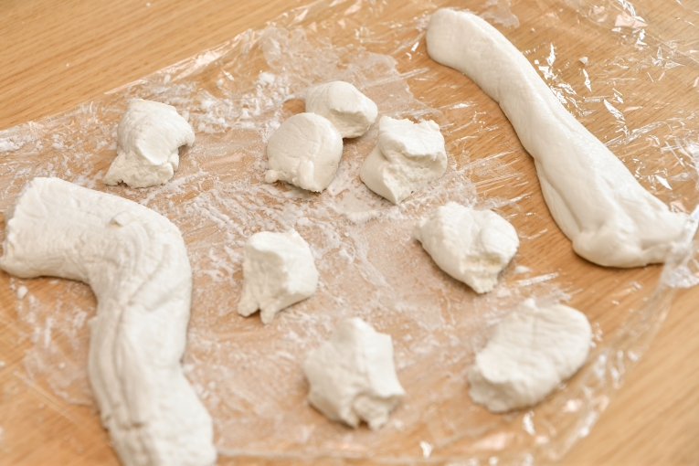 棒状にして、小さくちぎっていくと丸めやすい 粘土のような生地。子どもたちの得意技