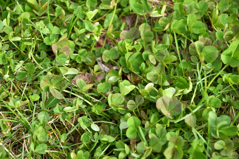 しあわせのよつばの⑤「 ク◇ーバー 」春のお庭で丸くなって夢中で探すよね。もう少し暖かくなると真っ白な可愛いお花が咲きます。