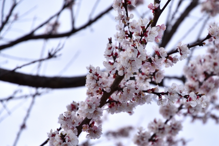 今が満開の桜~ じゃないよ。でもとっても似てるね。このお花が散って実になると、甘酸っぱい果物に変身します。そのまま食べるより、お砂糖に漬けたり、パパやママはお酒につけるととっても美味しい~ ⑧「 あ◇ず 」の木です。駐車場にあります。
